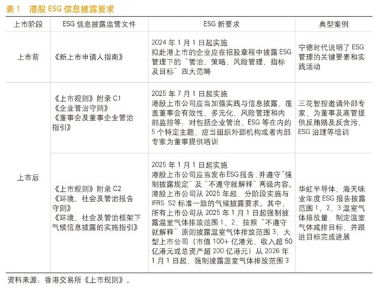 随之而来的是,ESG信息披露正从“自愿”走向“严格监管”,并逐渐成为全球资本市场的重要合规标准,港股也不例外。自2012年以来,经过十多年的发展,香港联交所逐步完善ESG信息披露从自愿性指引到强制性要求,与国际接轨。及时制定国家标准。 2012年,香港联交所发布《ESG报告指引》作为《上市规则》附录,相关指标列为“建议披露”。2015年,对ESG指引进行修订,引入“遵守或解释”原则。董事会ESG洋葱(明确风险管理策略和结构)、实质性、量化、一致报告原则的应用、ESG报告范围的解释和2024 年,将发布《基于环境、社会和治理框架的优化气候披露》,增加详细的气候披露要求,并与国际财务报告可持续发展披露标准完全接轨。2025年,《首次上市申请人指引》发布,要求企业在IPO时披露其ESG治理结构和气候变化战略。